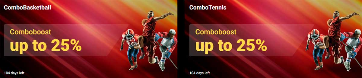 3 – 4 events – Bonus odds 1.07 5 – 7 – Bonus odds 1.10 8 – 10 – Bonus odds 1.15 11 – 14 – Bonus odds 1.20 15 – 999 events – Bonus odds 1.25 The bonus quantity is Unlimited. Available for “Sports” and “Live Betting” sections |